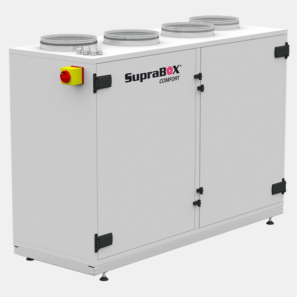 Установки Rosenberg SupraBox COMFORT з рекуперацією тепла відрізняються компактністю і високою енергоефективністю. Вони широко використовуються в енергозберігаючих системах вентиляції магазинів, офісних центрів, готелів і інших об'єктів. Установки Supra Box Comfort (Підвісне виконання D) проіводіт в 2 типорозмірах. Діапазон витрати повітря 1100 - 1900м ³ / ч. Можливо так само всепогодне виконання.